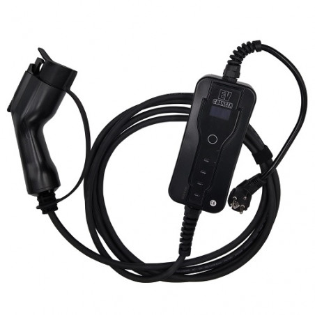5 metrų ilgio įkrovimo kabelis. Laidas dėl 1-fazės konstrukcijos ir 16A srovės leidžia įkrauti elektromobilius iki 3.6kW galia.